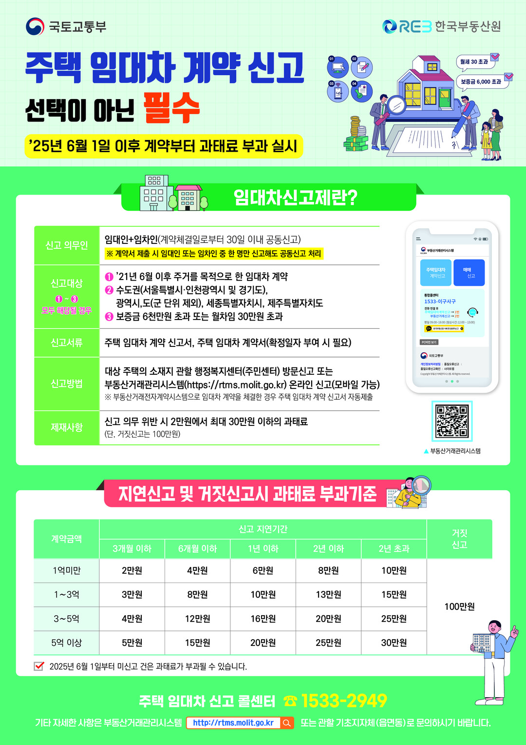 제도의 안정적 정착을 위해 오는 31일까지 4년간의 계도기간을 두고 과태료를 면제해 왔으나 6월1일부터는 미신고·지연 신고 시 최대 30만원, 허위 신고 시 100만원의 과태료를 부과한다.