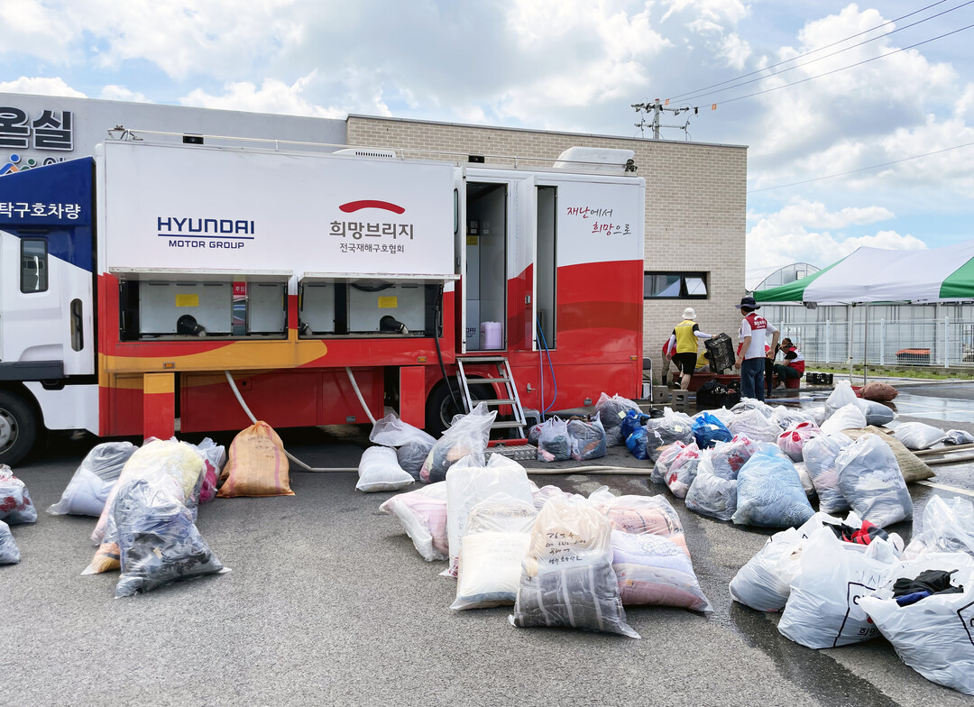 이번 활동에는 현대자동차그룹의 후원으로 제작된 5.5톤 규모의 특수 이동형 세탁차량이 투입됐다. 차량에는 18kg 대형 세탁기 3대와 23kg 대형 건조기 3대가 탑재돼 있으며, 하루 8시간 기준 약 1000kg의 의류와 이불 등을 현장에서 직접 세탁·건조할 수 있다.
