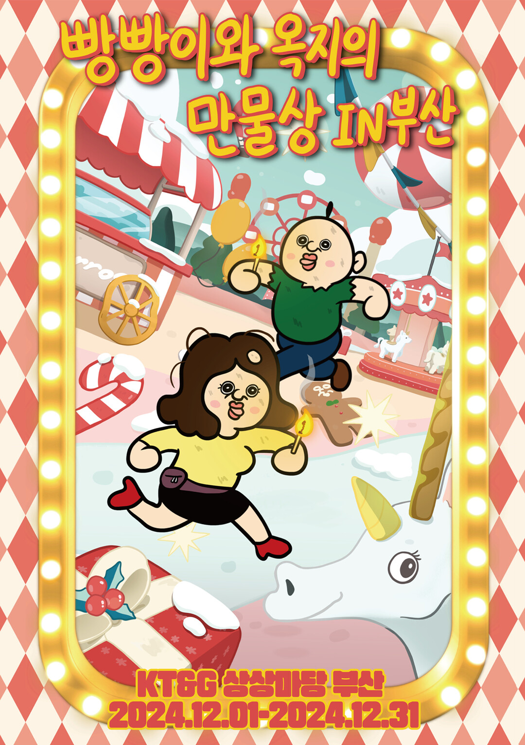‘빵빵이와 옥지의 만물상 IN 부산’을 주제로 한 이번 팝업스토어는 트럭 모형과 크리스마스 트리를 활용한 대형 포토존이 설치되고, 빵빵이 테마 네컷사진 포토부스와 피규어 가챠머신, 인형뽑기 등 다양한 즐길거리도 마련돼 있다.
