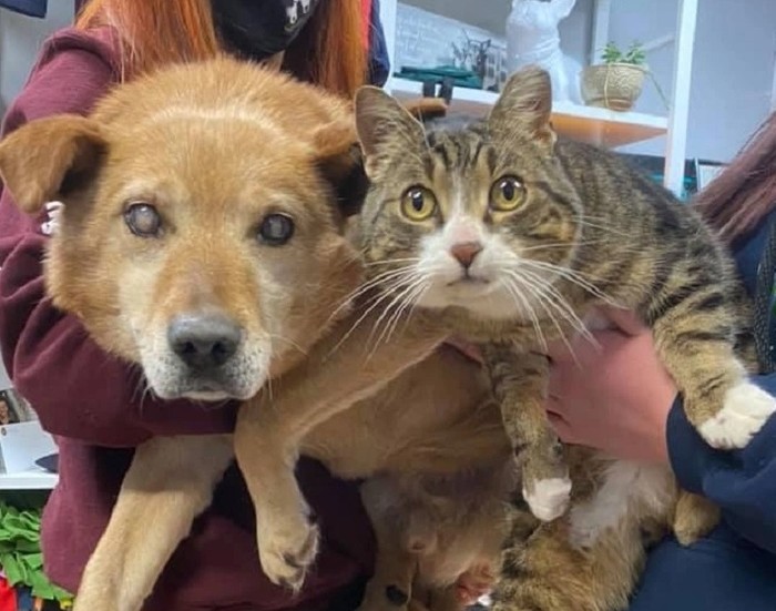 [하비엔=박명원 기자] 한 눈먼 유기견과 절친 고양이가 한 보호 단체에 맡겨진 후 새로운 입양 가정을 기다리고 있다고 한다.