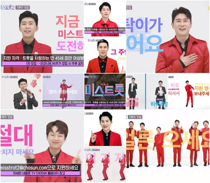 한편 TV CHOSUN 원조 트로트 오디션 ‘미스트롯’ 시즌2는 트롯을 사랑하는 만 45세 미만 여성이라면 누구나 지원 가능하다. 참가 지원서를 작성한 후 간단한 자기소개와 함께 직접 부른 노래가 담긴 5분 내외 영상을 첨부하는 방식으로, 1차 모집은 오는 8월 16일까지다. 자세한 내용은 공식 홈페이지 내 공지사항을 통해 확인할 수 있다.