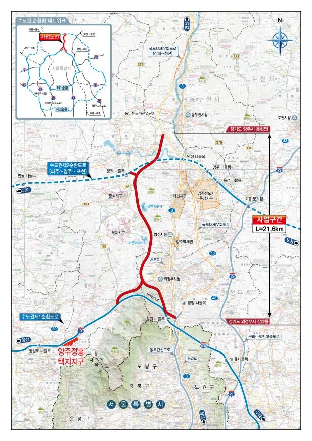 국토부는 동부간선도로와 국도 3호선 대체 우회도로를 연결해 동두천시∼양주시∼의정부시 구간의 교통 정체를 완화하고, 수도권제1순환선·제2순환선을 연결해 국가 간선 도로망의 연계성을 강화하고자 이번 사업을 추진해왔다.