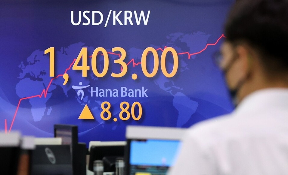 1일 서울외환시장에 따르면 원·달러는 이날 오전 10시 30분 쯤 전일(1387.0원) 대비 13원 이상 오른 1400선을 돌파했다. 10시 55분 현재 1400.40원에 올라섰다. 전일대비 8.0원 오른 1395.6원에 장에 나선 환율은 곧바로 상승폭을 확대해 갔다. 장중 1400원 이상은 지난 5월 19일(장중 최고가 1401.3원) 이후 두 달여 만에 처음이다. 주요 6개국 통화 대비 달러 가치를 나타내는 달러인덱스가 100선을 상회하는 등 달러 강세가 환율 상승을 이끈 것으로 보인다.