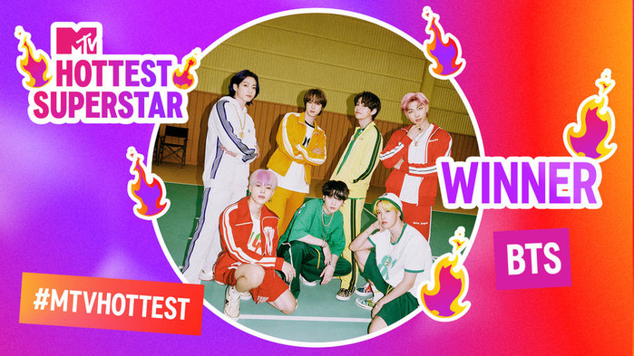 영국 MTV는 29일(현지시간) 공식 홈페이지를 통해 "방탄소년단이 지난 23일까지 진행된 투표에서 총 1,930만 표를 얻어 'MTV 핫티스트 슈퍼스타 2021(MTV's Hottest Superstar 2021)'에서 1위를 차지했다"라고 전했다. 방탄소년단은 특히 지난 2019년부터 3년 연속 왕관을 차지함으로써 2013~15년 연속 1위에 올랐던 원 디렉션(One Direction)과 '최다 1위' 동률을 이뤘다.