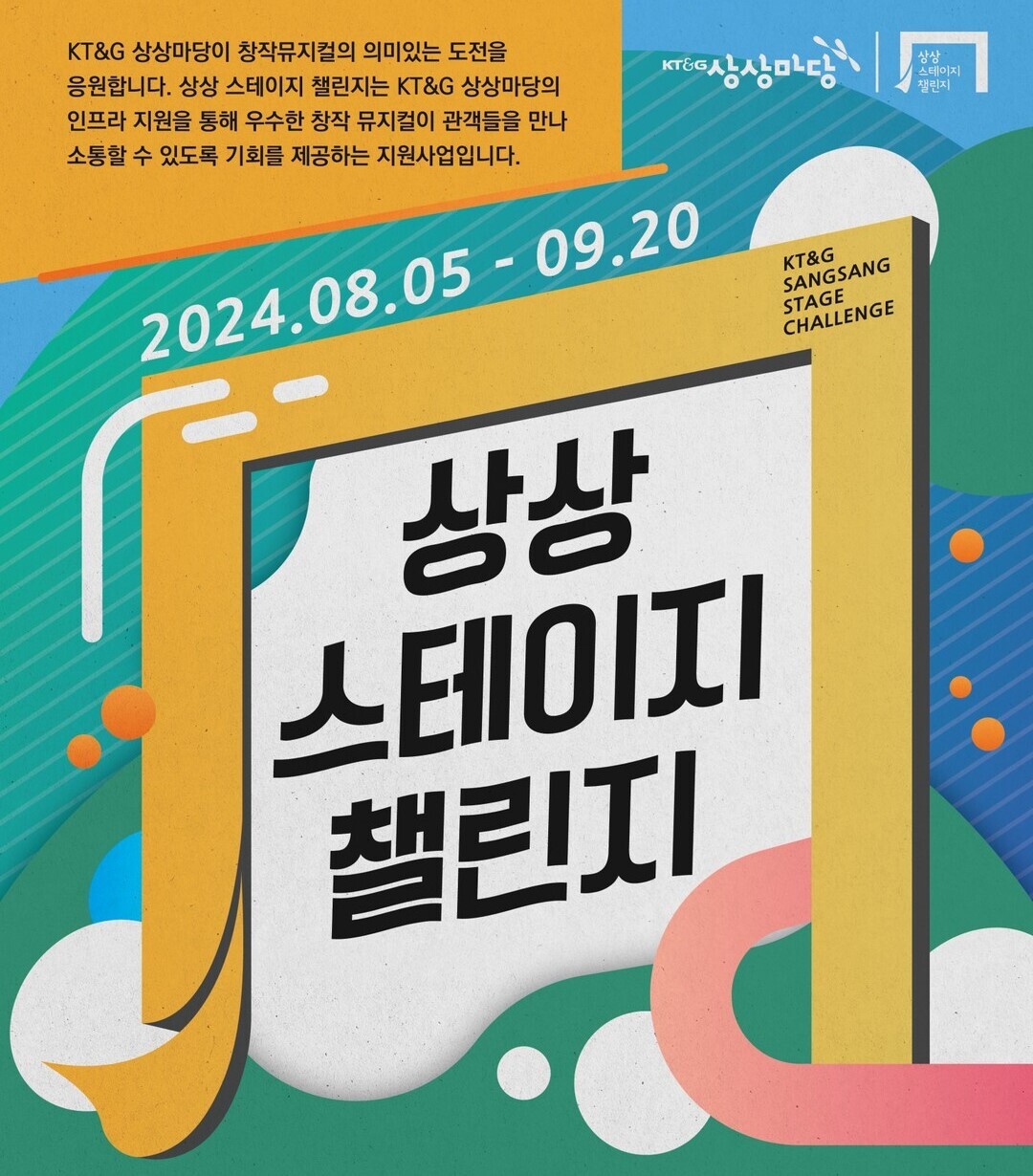 [하비엔뉴스 = 한시은 기자] KT&G 상상마당 대치는 오는 9월20일까지 창작 뮤지컬 지원 프로그램인 ‘상상 스테이지 챌린지’의 제7회 참여 작품을 공개 모집한다고 5일 밝혔다.