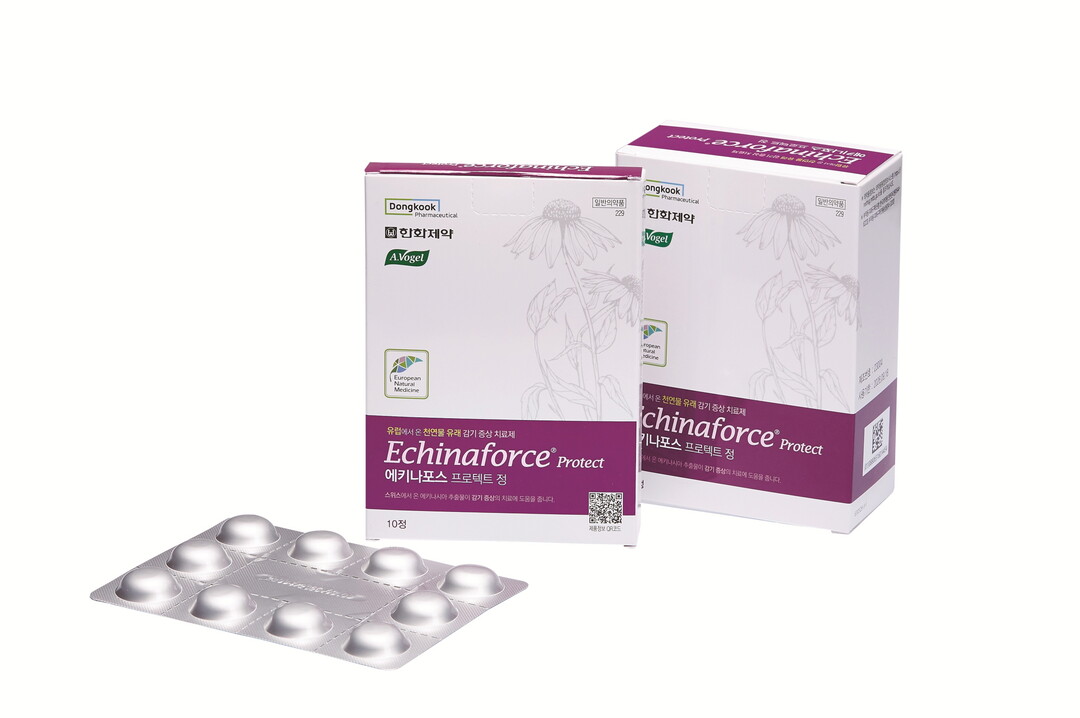 11일 동국제약에 따르면, ‘에키나포스 프로텍트정’은 면역력 강화에 도움이 되는 천연물 성분의 감기 치료제로 북미 원주민이 오래전부터 약용 식물로 사용해 온 에키나시아 푸르푸레아의 추출물(에키나시아 푸르푸레아 허바팅크, 에키나시아 푸르푸레아 뿌리팅크)을 주성분으로 한다. 기침, 콧물, 인후염, 두통, 발열, 근육통 등 일반적인 감기 증상의 치료에 도움을 준다.