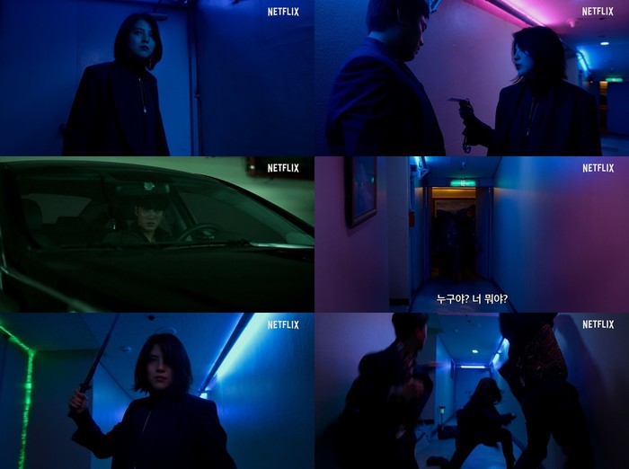 공개된 영상은 잠입 수사 중 마약 거래상의 아지트로 들어가는 ‘지우’(한소희)의 모습으로부터 시작된다. 적의 아지트 한복판에서 홀로 조직원을 상대하는 ‘지우’의 액션은 한순간도 눈을 뗄 수 없는 강렬한 몰입감을 선사한다. 좁은 공간에 구애받지 않는 아슬아슬한 스턴트와 현실감 넘치는 격투 장면들은 '마이 네임'에서만 느낄 수 있는 거칠고 리얼한 액션을 통해 긴장감을 끌어올린다.