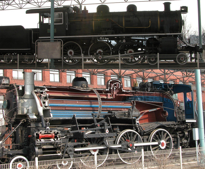 | ▲철도대학 터우형증기기관차와 절개된 뒷면 |