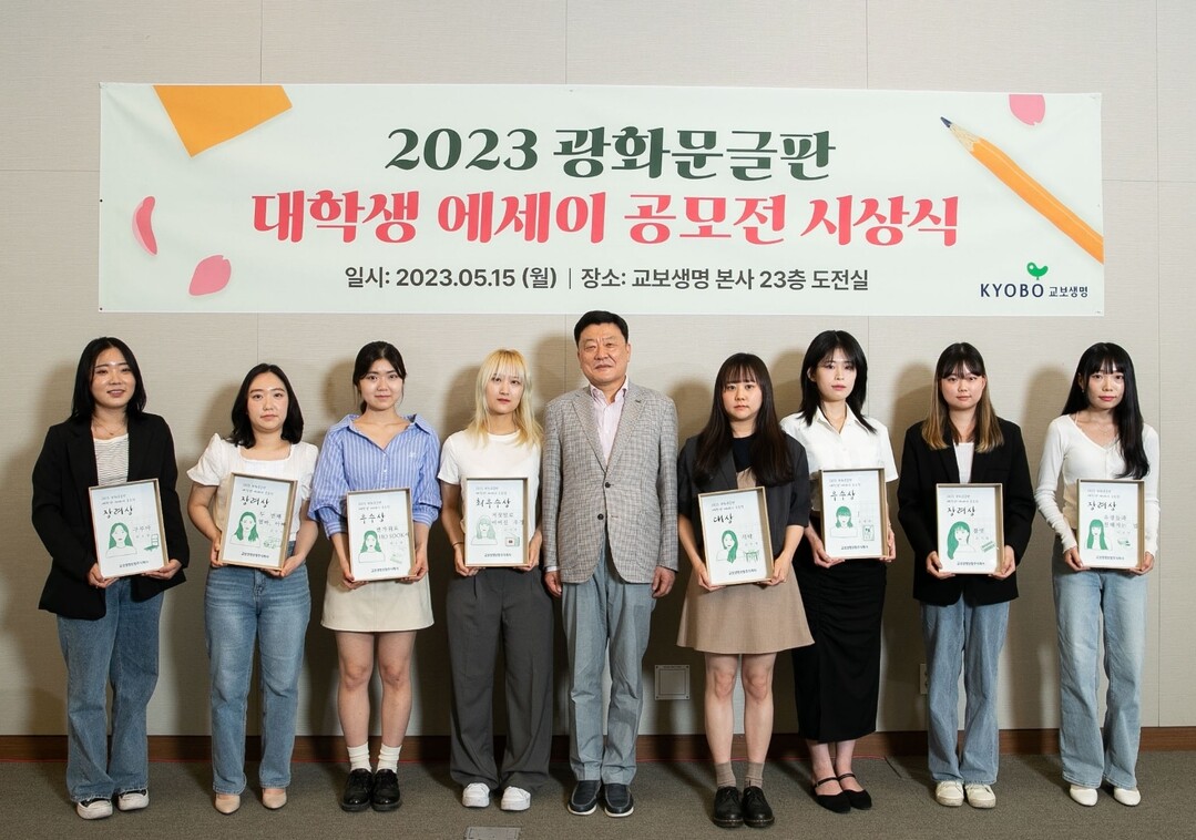 [하비엔뉴스 = 송현섭 기자] 교보생명은 지난 15일 광화문 본사 23층 도전실에서 ‘2023 광화문글판 대학생 에세이 공모전’ 시상식을 개최했다고 16일 밝혔다.