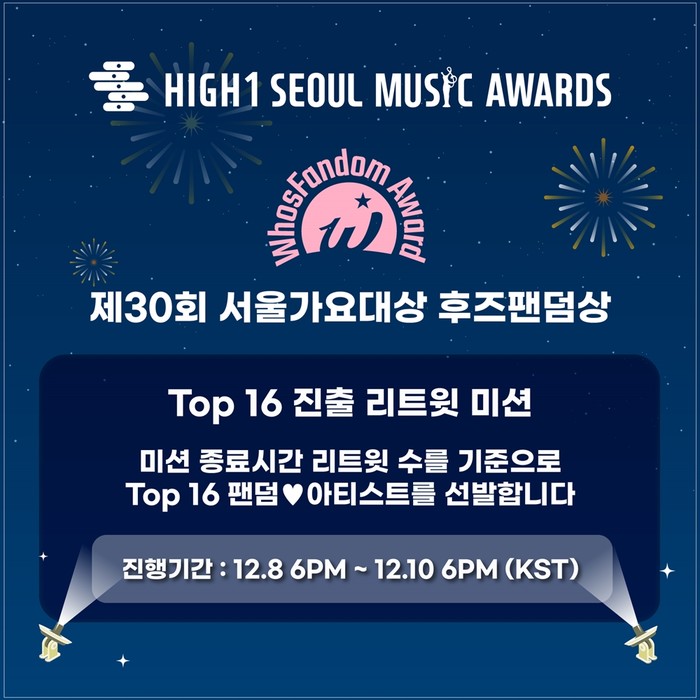 글로벌 케이팝 팬덤 플랫폼 후즈팬(Whosfan)에 따르면 지난 8일 오후 6시 후즈팬의 공식 트위터 계정을 통해 제30회 서울가요대상 '후즈팬덤상' 톱 40(Top 40) 투표가 시작됐다.