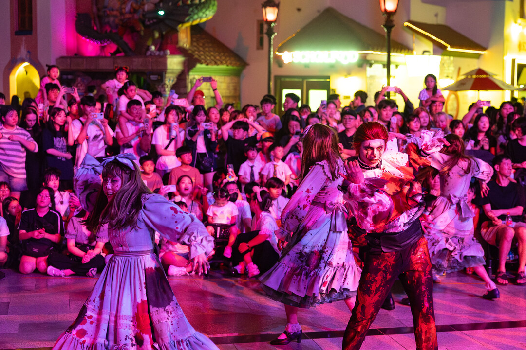 매일 오후 8시20분 어드벤처 1층 스페인해적선 광장에서 열리는 신규 호러 공연 ‘스트리트 호러 쇼:더 마리오네트’도 그 중 하나다. 지난달 7일 첫 오픈한 이후 스페인해적선 광장은 ‘명당’을 잡기 위한 고객들로 연일 북적거리고 있다.