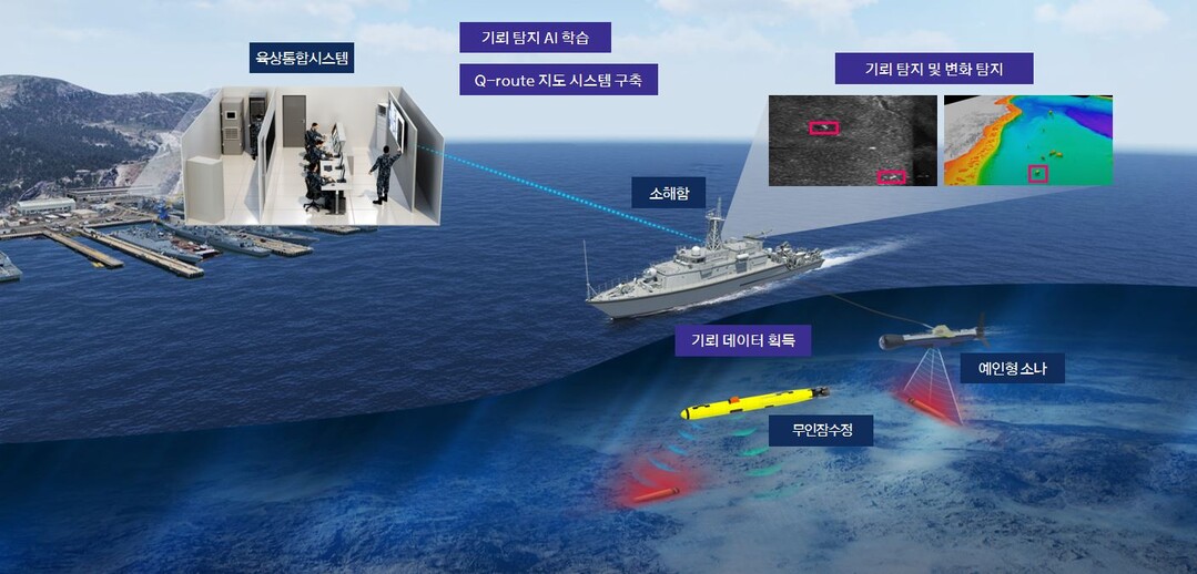 해군은 최신 AI기술이 적용된 자동 기뢰탐지체계를 통해 기뢰를 탐지·식별하기 위한 각종 기뢰·해저 환경 정보에 대해 빅데이터를 구축하고 딥러닝해 더욱 신속하고 정확한 기뢰 탐지 및 소해 작전 수행이 가능해진다.