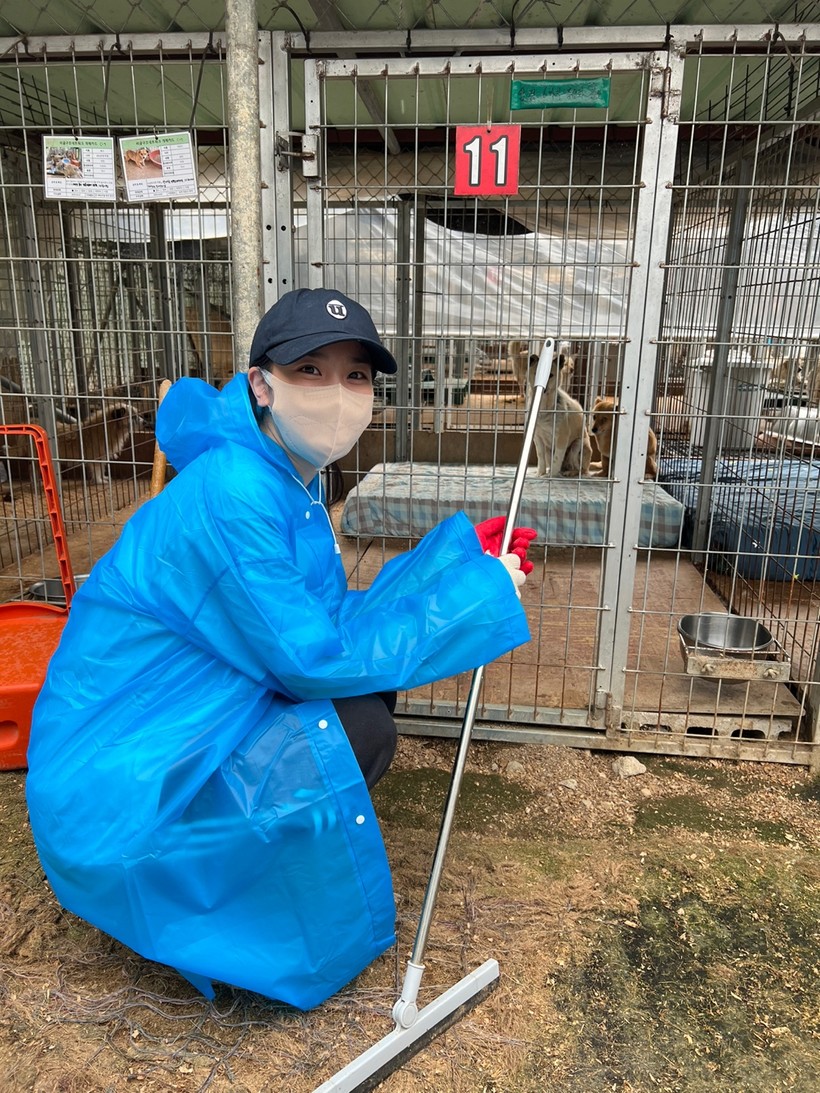 | ▲ 전속 모델 장희령 배우가 유기견 봉사단원과 함께 비글구조네트워크 포천쉼터에서 봉사활동을 펼쳤다. |