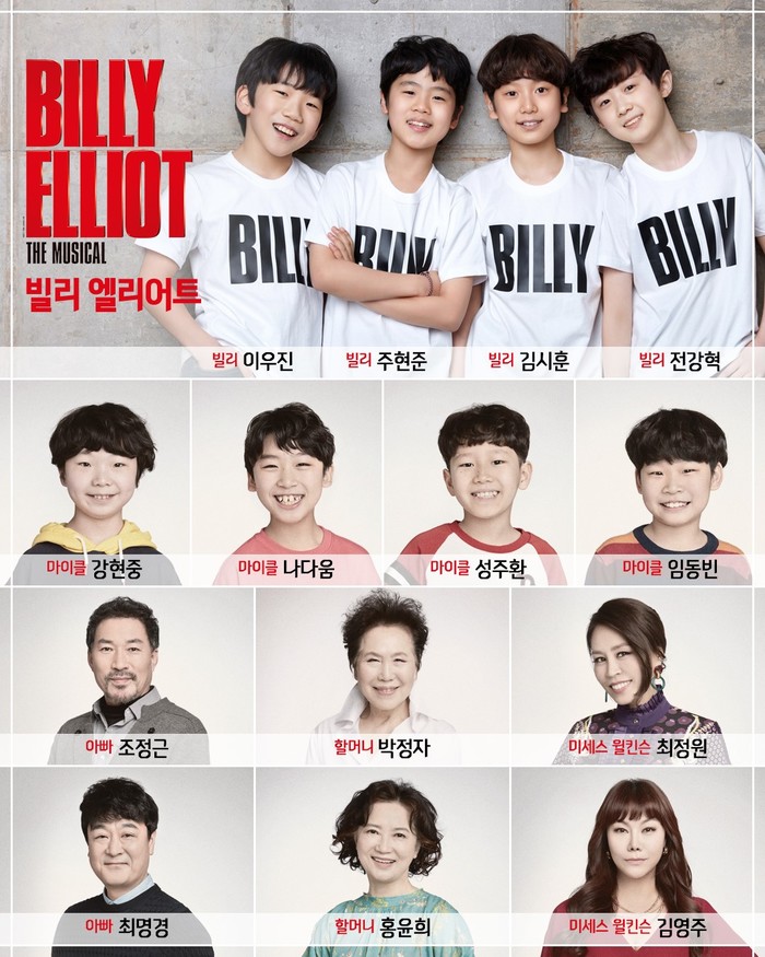 특히 ‘빌리’들은 모든 오디션과 빌리 스쿨 전 과정을 ‘마스크’를 쓴 채 자신과의 싸움을 견뎌왔다. 그 힘든 과정을 거쳐 어린이 모델 경력의 아름다운 춤 선을 가진 김시훈(12), 뛰어난 체력과 에너지로 모든 춤을 흡수하는 이우진(13), 우아한 라인을 보여주는 발레 강자 전강혁(13), 아역 배우 출신으로 다양한 춤까지 섭렵한 기대주 주현준(12)이 ‘빌리 엘리어트’ 역으로 최종 선발되었다.