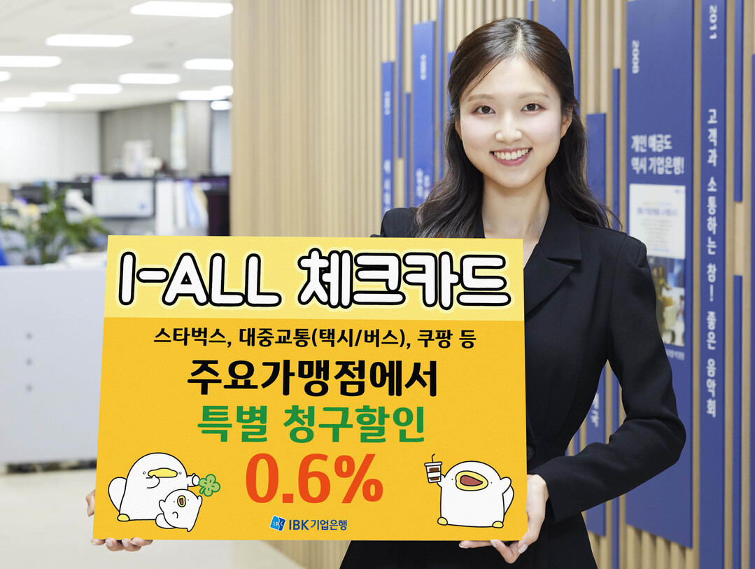 I-ALL체크카드는 연회비, 전월실적 조건, 할인한도 제한이 없는 일상생활 맞춤형 카드로, 국내·외 가맹점 이용금액의 0.2% 청구할인 혜택을 제공한다.