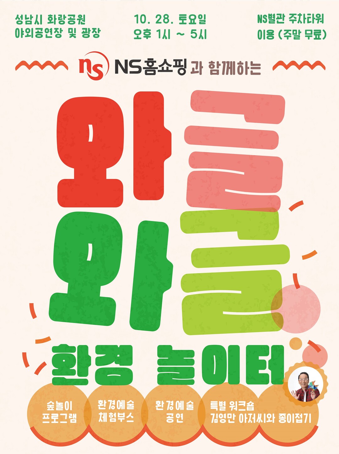 [하비엔뉴스 = 윤대헌 기자] NS홈쇼핑은 오는 28일 오후 1~5시 경기도 성남 판교화랑 공원에서 환경예술축제 ‘와글와글 환경놀이터’를 개최한다고 26일 밝혔다.