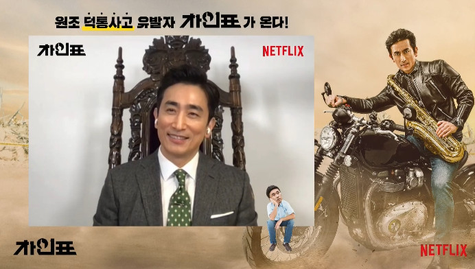 28일 오전 코로나19 확산 방지를 위해 넷플릭스 영화 <차인표>의제작보고회가 온라인으로 개최됐다. 이 자리에는 진행 박경림, 감독 김동규, 배우 차인표, 조달환이 함께 이야기를 나눴다.