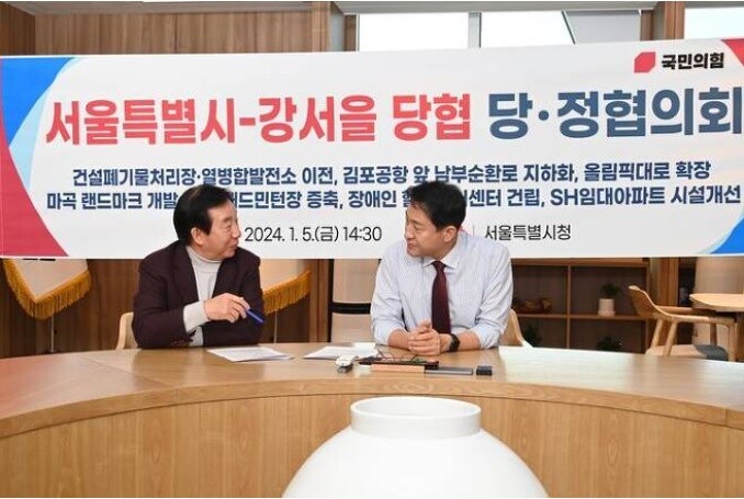 [하비엔뉴스 = 이정우 기자] 김성태 국민의힘 서울 강서을 당협 위원장과 오세훈 서울시장은 지난 5일 서울특별시청에서 당·정협의회를 열고 강서지역 발전 방안을 논의했다.