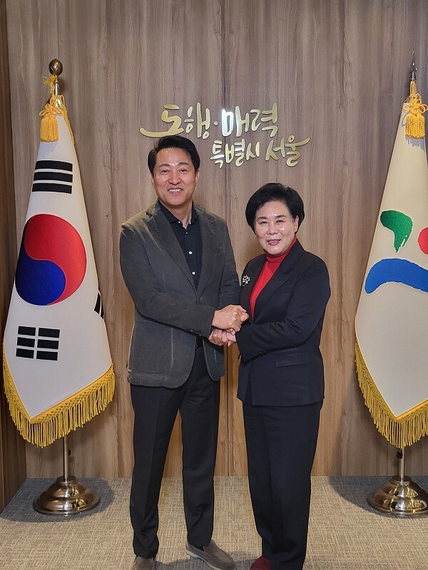 이날 제22대 국회의원 선거에 출마를 준비 중인 김필례 예비후보는 서울시청을 방문해 오세훈 서울시장 만나 ‘고양 서울 통합’ 등과 관련해 논의했다.