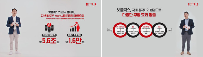 글로벌 컨설팅 그룹 딜로이트의 조사에 따르면, 국내 콘텐츠 산업을 넘어 연관 분야 전반에서 약 5조 6천 억 원의 경제적 파급효과가 발생한 것으로 조사됐다. 또한, 국내 콘텐츠 업계에 단행한 약 7,700억 원의 투자를 기반으로 약 1만 6천 개의 일자리 창출에도 기여한 것으로 나타났다. 넷플릭스는 올 한 해에도 약 5,500억 원에 달하는 투자 계획을 발표한 바 있다.