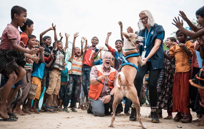 [하비엔=박명원 기자] 강아지 때 엄마와 헤어졌지만 환한 웃음을 지닌 폭스트롯(Foxtrot)이라는 개가 UN 난민 캠프의 마스코트가 됐다.