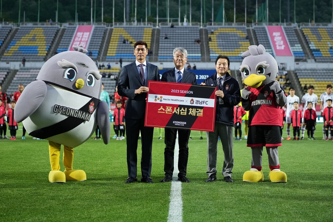 헥토헬스케어는 경남 창원시에 위치한 창원축구센터에서 김석진 헥토헬스케어 대표와 경남FC 지현철 대표, 경남FC 설기현 감독이 참석해 업무 협약을 체결했다고 4일 밝혔다.