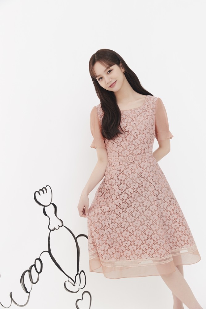 이번 캠페인에서 혜리는 플라워 레이스 소재의 쉬폰 원피스, 슬리브리스 블라우스와 팬츠 셋업에 그린 체크 컬러의 숏 자켓, 그리고 뷔스티에 원피스에 와이드한 칼라 디자인의 블라우스를 매치해 한껏 사랑스러운 룩을 제안한다.