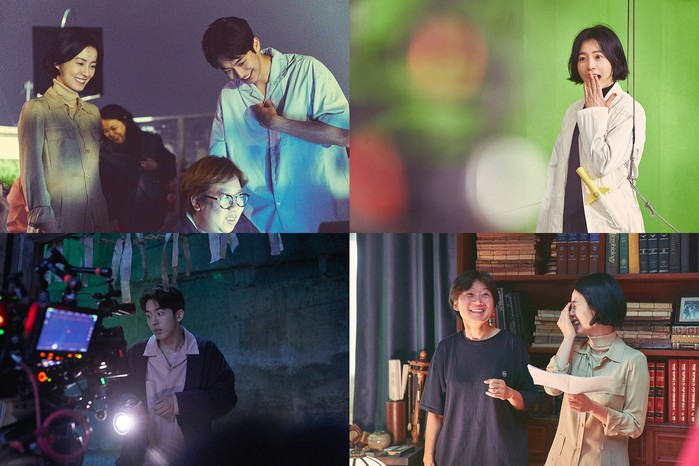 공개된 비하인드 스틸은 촬영 현장의 화기애애했던 분위기와 함께 촬영에 한껏 몰입한 배우들의 모습을 담아내 눈길을 끈다. <보건교사 안은영>의 주역 정유미와 남주혁이 모니터링을 하며 밝게 웃고 있는 모습은 유쾌했던 촬영 현장의 에너지를 고스란히 전한다.