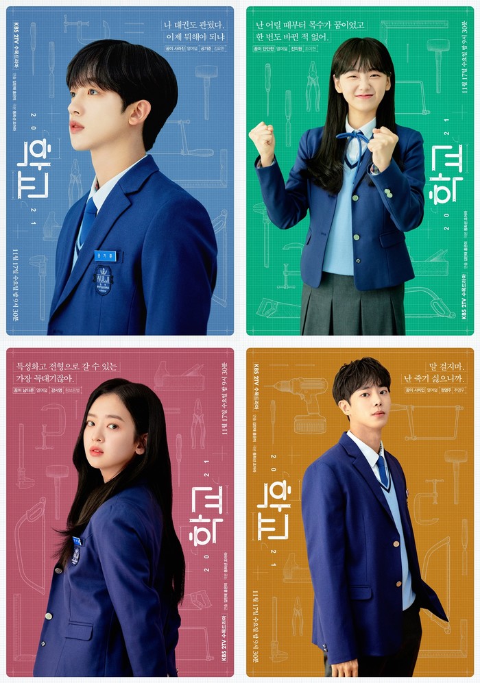 오는 11월 17일(수) 밤 9시 30분 첫 방송되는 KBS 2TV 새 수목드라마 ‘학교 2021’(극본 동희선, 조아라/ 연출 김민태/ 제작 ㈜래몽래인, ㈜킹스랜드) 측은 4인 4색 개성이 돋보이는 캐릭터 포스터 4종을 공개했다.