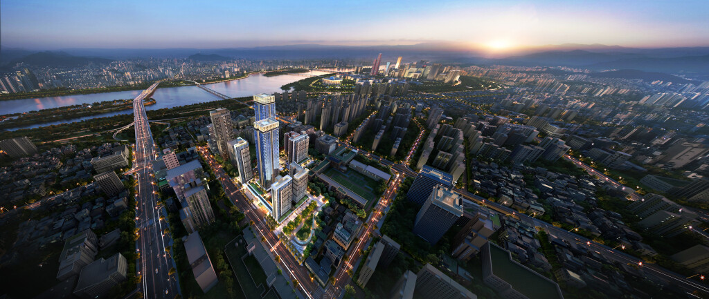 단지 설계에는 일본의 롯본기힐스를 비롯해 LA의 산타모니카 플레이스, 라스베이거스 벨라지오 호텔을 디자인한 세계적인 건축설계 그룹인 JERDE(저디)가 참여한다. 대우건설은 프리미엄 한강뷰 세대를 원안대비 117세대 추가 확보해 많은 세대가 조망권을 누릴 수 있도록 했으며, 단지 최고층인 49층에는 전용 엘리베이터를 갖춘 복층의 스카이 어메니티를 조성할 계획이다.