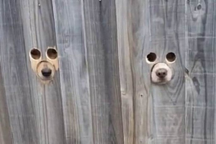 에린 조이스(Erin Joyce)는 두 마리의 반려견을 위해 정원 울타리에 여섯 개의 작은 구명을 냈는데 네 개는 눈을 위해 두 개는 코를 찔러 넣기 위해서였다.