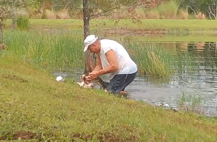 | ▲ 악어로부터 강아지를 구출하는 윌뱅크스씨, 사진 = WBBH |