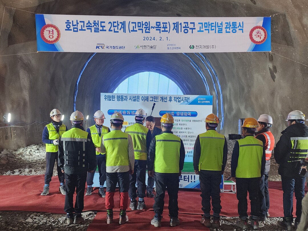 [하비엔뉴스 = 박정수 기자] 국가철도공단 호남본부는 지난 1일 ‘호남고속철도 2단계 건설사업’을 통해 전남 함평군 학교면 고막리 일원을 통과하는 고막터널을 관통했다고 2일 밝혔다.