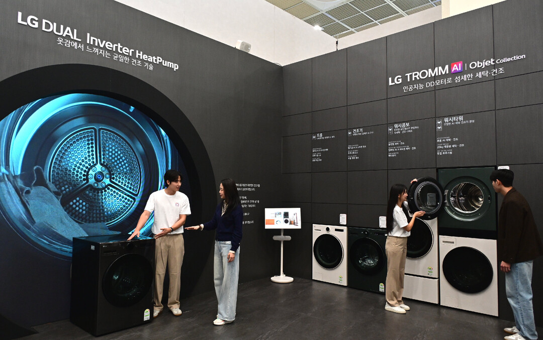 또 LG전자는 세탁기, 건조기, 워시콤보, 워시타워 등 4개 유형의 세탁 가전으로 혁신적인 프리미엄 세탁·건조 라이프를 제시한다. LG AI 세탁 가전은 AI가 고객이 투입한 세탁물의 무게, 습도, 재질을 분석해 최적화된 맞춤 세탁건조를 하는 ‘AI DD 모터’가 탑재돼 있다.