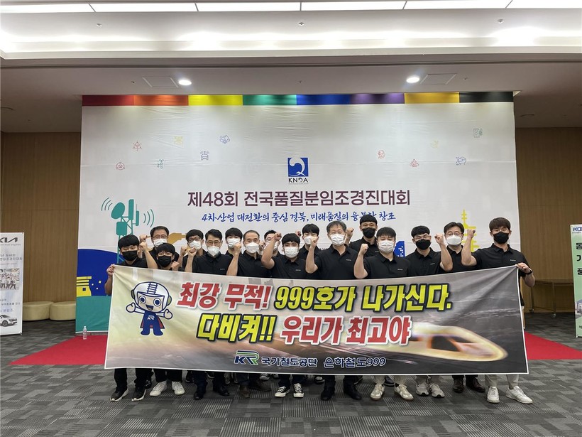 | ▲지난 2일 열린 제48회 전국품질분임조 대회에 국가철도공단 품질분임조 ‘은하철도999’가 참가해 기념촬영을 하고 있다. |