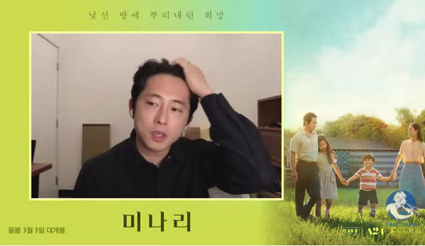 26일 오전 영화 <미나리> 화상 간담회가 진행된 가운데 감독 정이삭, 배우 스티븐 연, 한예리, 윤여정이 함께 이야기를 나눴다.