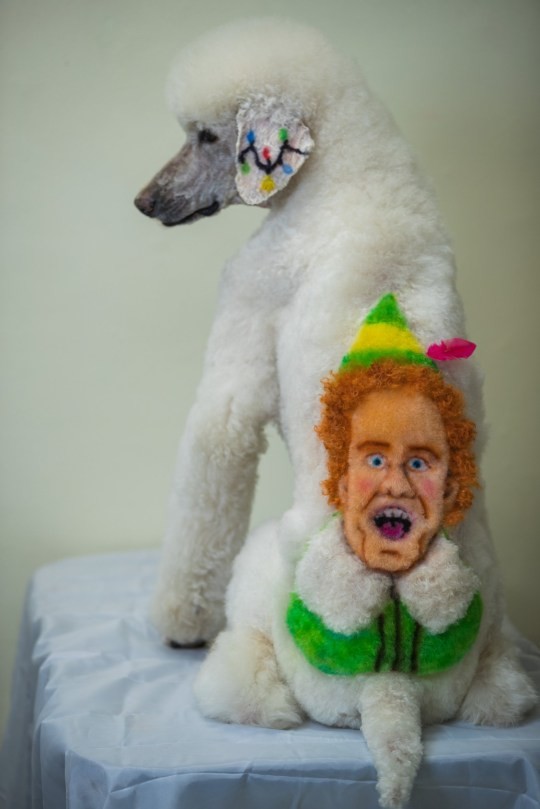 [하비엔=박명원 기자] 개 미용사 니콜 벡맨(Nicole Beckman, 28)은 크리스마스를 기념하기 위해 10살짜리 푸들인 '아이라'(Ira)를 치장하기 위해 무독성 염료를 사용해 자신이 좋아하는 영화 '엘프'(Elf)의 주인공인 버디의 캐릭터를 염색했다.