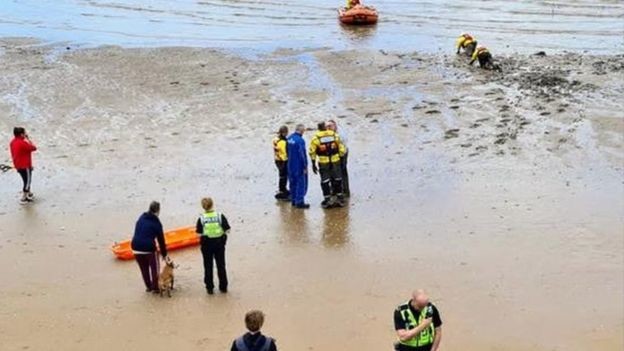RNLI(Royal National Lifeboat Institution, 왕립국가구조선협회)에 따르면 이 남성은 뇌종양 진단을 받은 반려견과 작별 산책을 하다가 진흙 뻘에 무릎깊이까지 빠졌다고 밝혔다.
