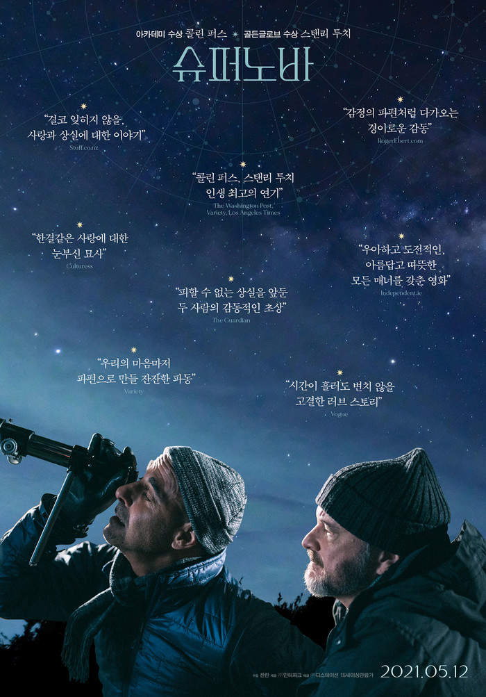 <슈퍼노바>는 해리 맥퀸 감독의 수년간의 꼼꼼한 자료 조사와 섬세한 감정선이 돋보이는 각본으로 할리우드를 대표하는 명배우 콜린 퍼스와 스탠리 투치가 출연을 결심해 주목받았다. 콜린 퍼스와 스탠리 투치는 각각 ‘샘’과 ‘터스커’로 열연을 펼치며 인생의 마지막을 향하는 오랜 연인의 복잡한 감정을 유려하게 그려내 깊은 감동을 선사할 예정이다.