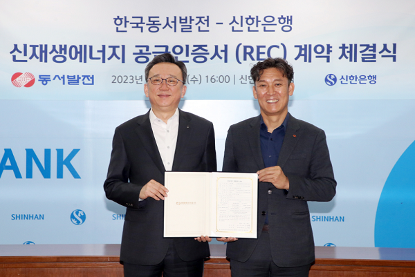 신한은행, 금융권 최초로 한국동서발전 REC 구매계약 체결