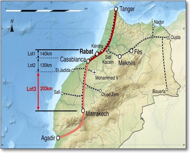 | ▲ 누아서-마라케시 203㎞ 고속철도 기본 및 실시설계 노선도. |