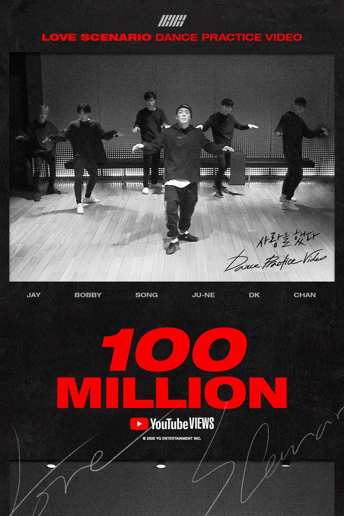 14일 YG엔터테인먼트에 따르면 아이콘의 '사랑을 했다 (LOVE SCENARIO)' 안무 영상은 지난 13일 오후 8시 3분께 유튜브 조회수 1억 뷰를 넘어섰다. 공식 뮤직비디오가 아닌, 아이콘의 안무 영상으로는 첫 억대 뷰다.