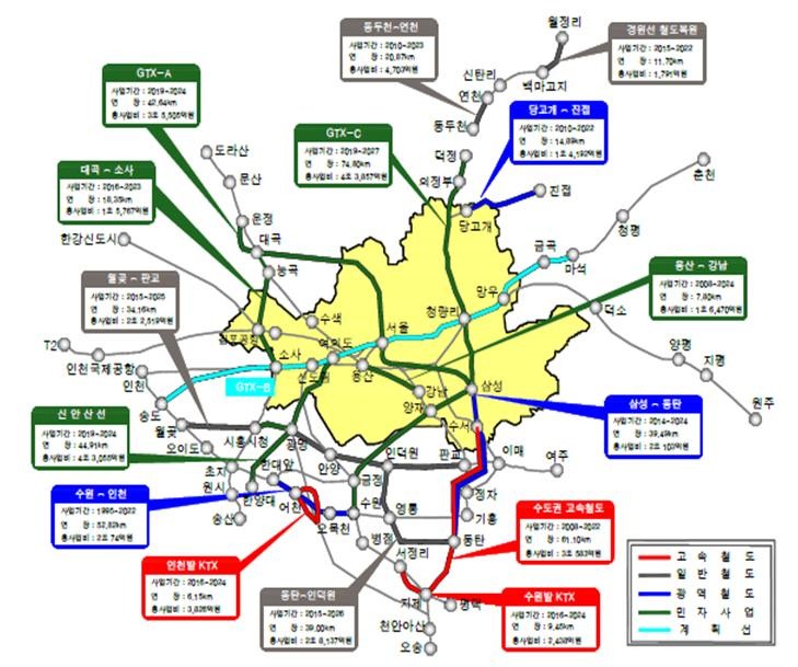 국가철도공단에 따르면 수도권 지역은 도심과 주요 거점 연결을 위해 현재 15개 철도건설 사업을 추진 중이고, 전체 사업 규모는 약 30조4000억원에 달한다.