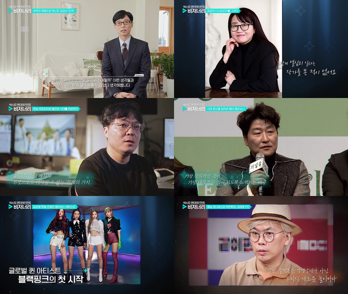 CJ ENM 시연재 마케팅기획담당은 "새해를 여는 앤솔로지 다큐멘터리라는 포맷을 통해 비저너리들이 이루어낸 빛나는 성과의 궤적을 한눈에 살펴볼 수 있는 시간이 되시길 바란다"며 "이들이 생각하는 넥스트 엔터테인먼트에 대한 이야기를 들어봄으로써 글로벌 시장에서 한국 대중문화의 비전을 다시 한번 확인하는 계기가 될 것"이라고 전했다.