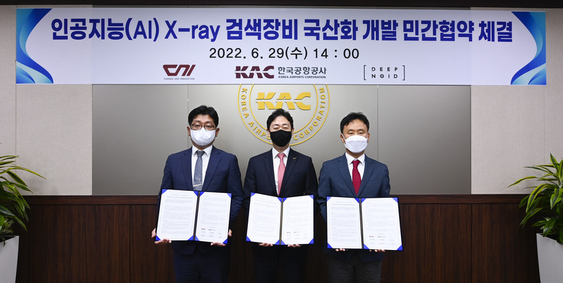 이번 협약으로 한국공항공사와 딥노이드는 공동개발한 AI X-ray 영상 자동판독시스템 기술을 씨엔아이의 국산 X-ray 장비에 탑재해 인공지능 검색장비 국산화 개발을 추진할 예정이다.