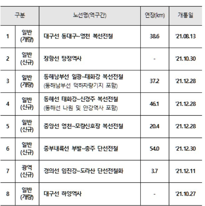 | ▲ 2021년 개통한 8개 사업. |