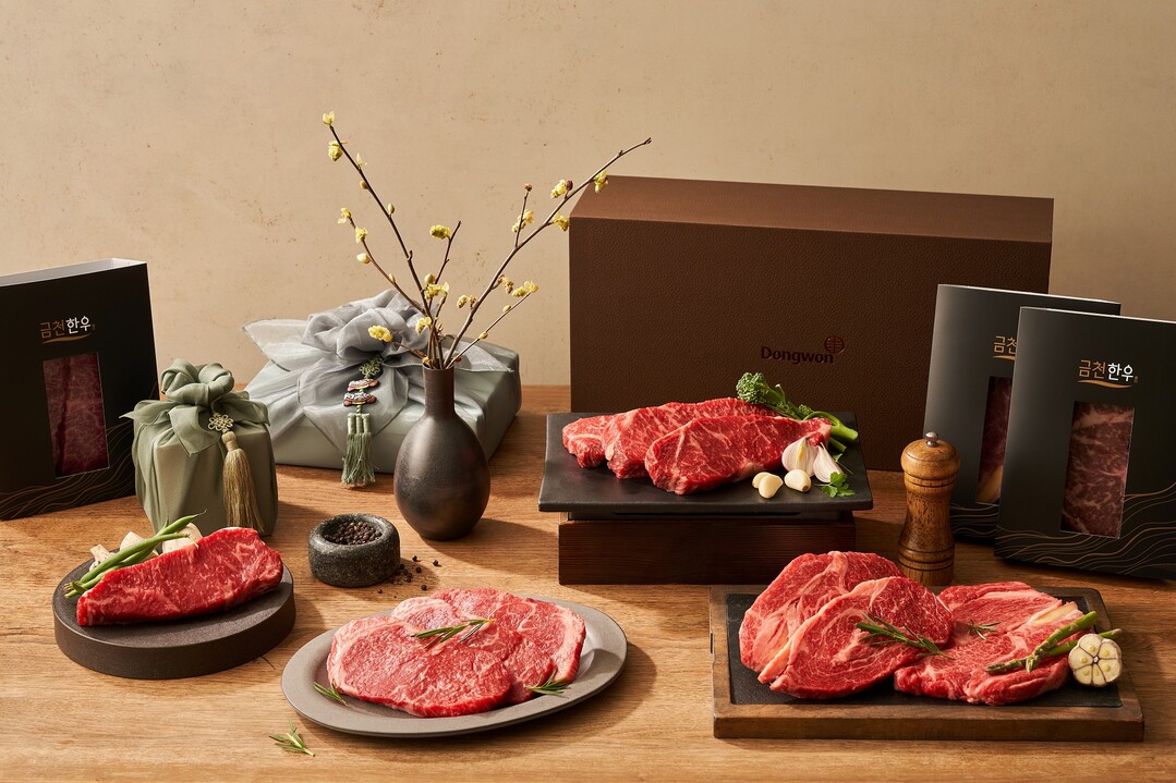 또 한우 암소 1++등급과 마블링(근내 지방도) 스코어 9로 구성된 ‘동원 한우 시그니처 넘버나인’은 꽃등심, 살치살, 안심, 채끝살, 치마살, 업진살을 각각 500g씩 담은 프리미엄 선물세트다.