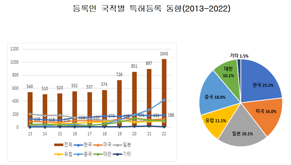 | 2013~2022년 등록인 국적별 특허등록 동향. [자료=특허청] |