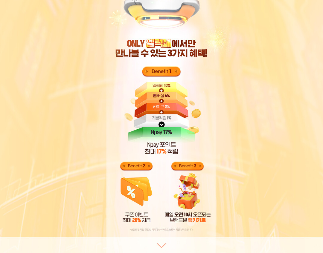 스토어별로 구매 금액의 최대 20% 할인 쿠폰을 지급하고, 네이버 N포인트 최대 17% 추가 적립 혜택도 누릴 수 있다. 브랜드별로 정한 일정금액 이상을 구매하면 화장품 샘플과 파우치, 브러시 등의 사은품도 받을 수 있다.