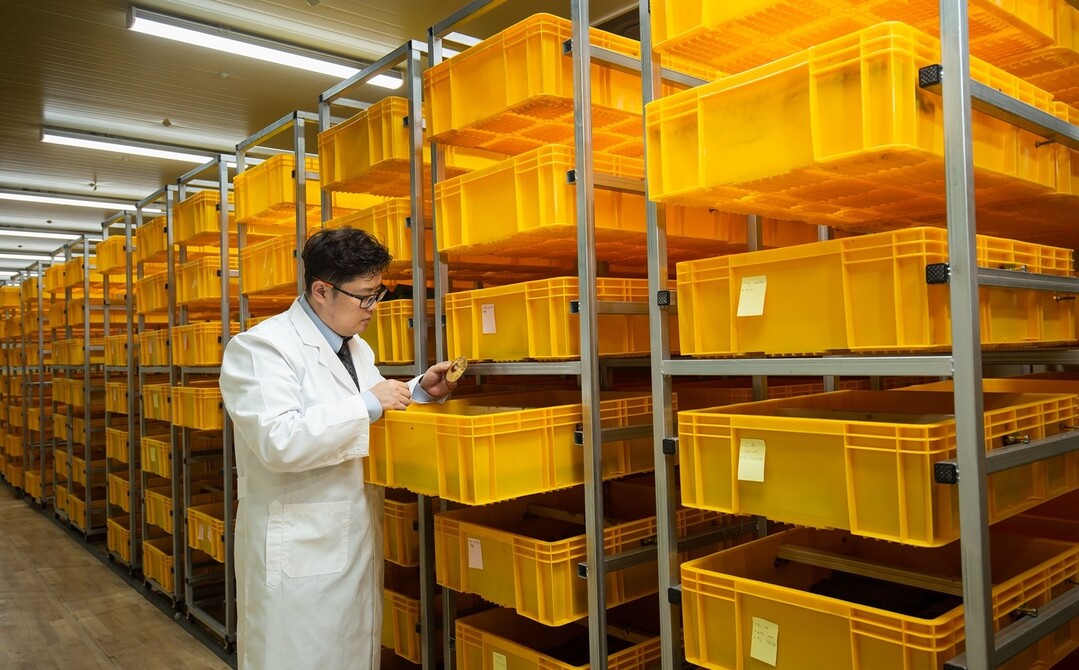 | 강원랜드 환경정화곤충 동애등에 사육장에서 담당자가 상태를 확인하고 있다. [사진=강원랜드] |